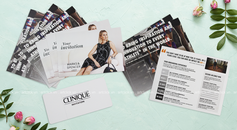 ArtClick luôn là nơi tin tưởng cho các công ty làm ấn phẩm thiệp mời doanh nghiệp với các mẫu thiết kế độc đáo, sáng tạo cùng công nghệ in siêu bền, siêu sắc nét, thành phẩm đa dạng theo yêu cầu của khách hàng.