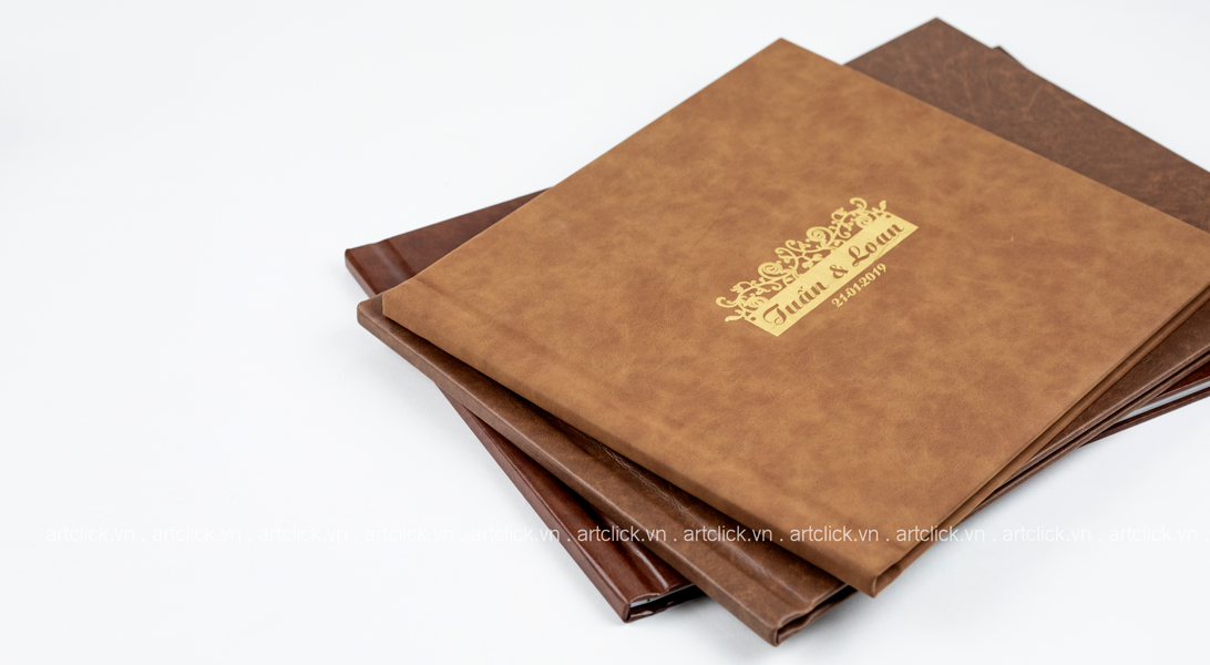 - Bìa album photobook cưới bọc da ép kim nhũ vàng theo yêu cầu