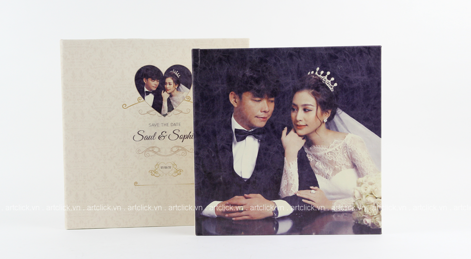 - Bìa album cưới bọc hình - một trong những kiểu bìa mới và được các cặp đôi lựa chọn khá nhiều trong thời gian gần đây.