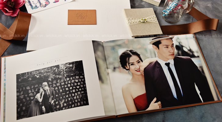 Thích hợp cho album cưới do độ bền cao và được mở phẳng nên hình ảnh có thể tràn qua cả 2 trang đơn.